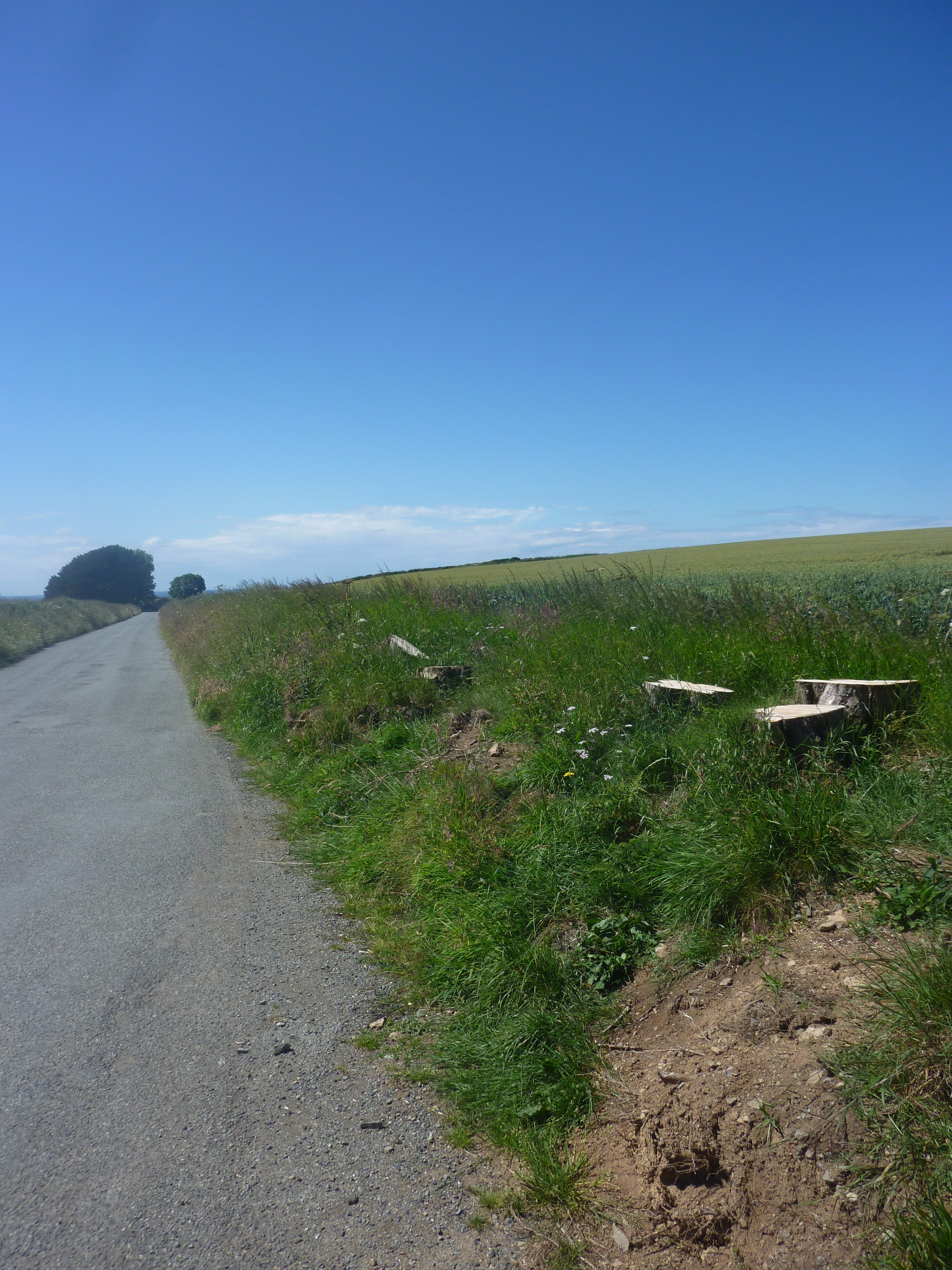And so it happened, the next time I was in Mathri and set out to walk to Abercastell, I saw the whole long line of trees was gone, cut down. The third of my photos shows their absence but not how much I miss them.