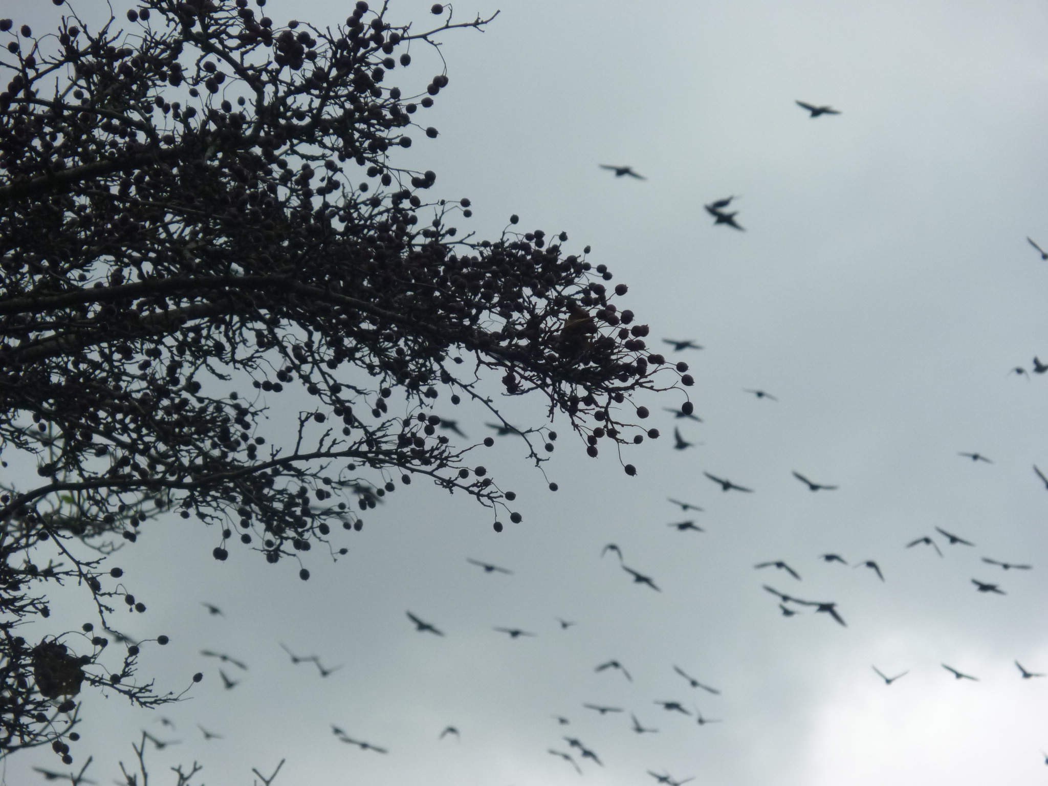 There are numerous variants of this rhyme. But whatever one is used, one thing is certain. With children, it has to be repeated again and again. And again. So, my child’s heart still present within me, it was lovely for me yesterday morning when Paul called me to the bedroom window in our house here in Wales. Crows were flying into and over the big old tree in our neighbour’s back yard. Always they arrived in pairs, settling in the tree, then perhaps moving position, then apparently in the shared whim of a moment sailing out into the windy grey air. Paul commented on how they must be enjoying their aerodynamics – or was it aerobatics?