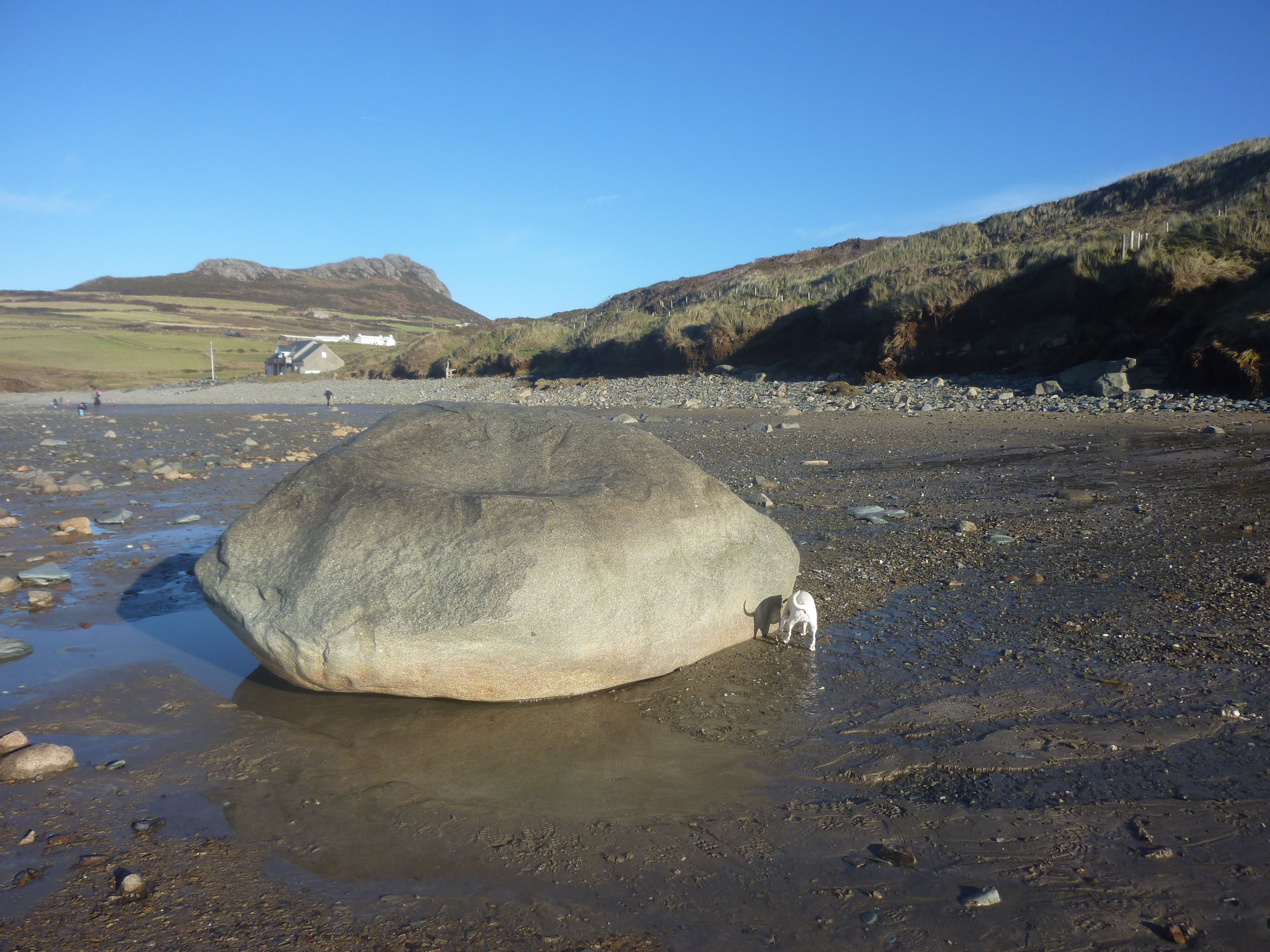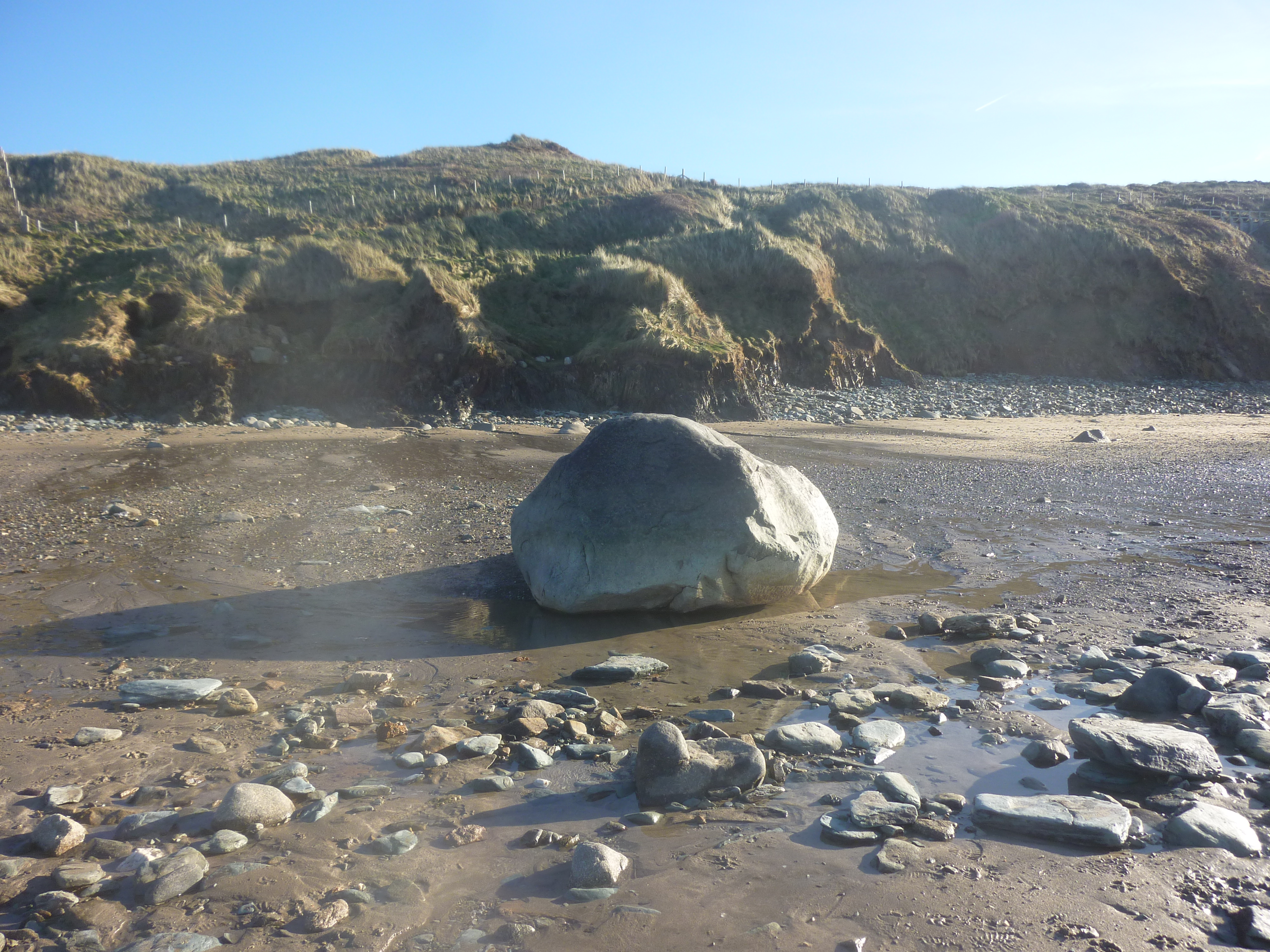 The rock was a familiar part of my world. I accepted it as it was. I never thought about the whole shape and size of it for, until this very time last year, I’d never seen or imagined the lower half of it – not until the incredible storms that hit these shores had scoured out Whitesands beach, taking at least four foot of sand out to sea and leaving the whole of the rock exposed.