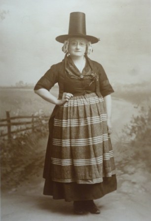 This New Year, I re-opened the big cardboard box that she’d had in her house to take another look at the large Welsh hat that was stored inside. I remembered her explaining that it was a ‘ceremonial’ hat – not the sort that would ever have been worn on run-of-the-mill occasions. This hat had belonged to her mother and when I got it out of its box this time, I looked under the tissue paper around it and, much to my surprise and delight, discovered three photos of her mother wearing it. That’s one of them on the right.