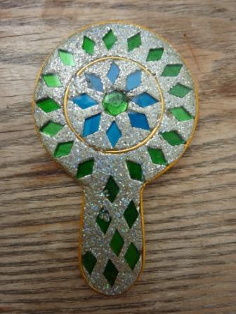 PS: Photos this week are, first, of some rocks on the beach that look like bald heads, second of the back of a pretty little mirror.