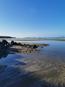 There’s something quite ravishing about Whitesands Beach. When the tide is out and the sands are exposed, the beach feels vast. When the tide is in, its nearness makes you look out at the sea and the islands. Sometimes I think about St David, Dewi Sant, coming here, no doubt with a group of friends and followers, in order to set sail for Ireland to continue his missionary work. The beach opens onto the Irish Sea. It seems to invite exploration. Perhaps it’s one of the things that helped Dewi Sant feel inspired to continue his work of preaching and talking with those who came to listen.